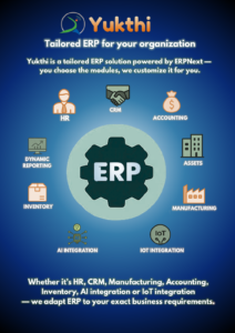 Yukthi is a customized ERP solution built on the ERPNext framework, offering a robust, open-source foundation with enterprise-grade capabilities. The solution supports modular deployment of core ERP functionalities including HR, CRM, Accounting, Inventory, Manufacturing, and Asset Management, along with advanced Dynamic Reporting. Yukthi enhances standard ERPNext capabilities through tailored configurations, workflow automation, role-based access controls, and seamless AI and IoT integrations. This approach enables organizations to achieve optimized operations, real-time visibility, and a future-ready ERP ecosystem tailored to evolving business demands.
